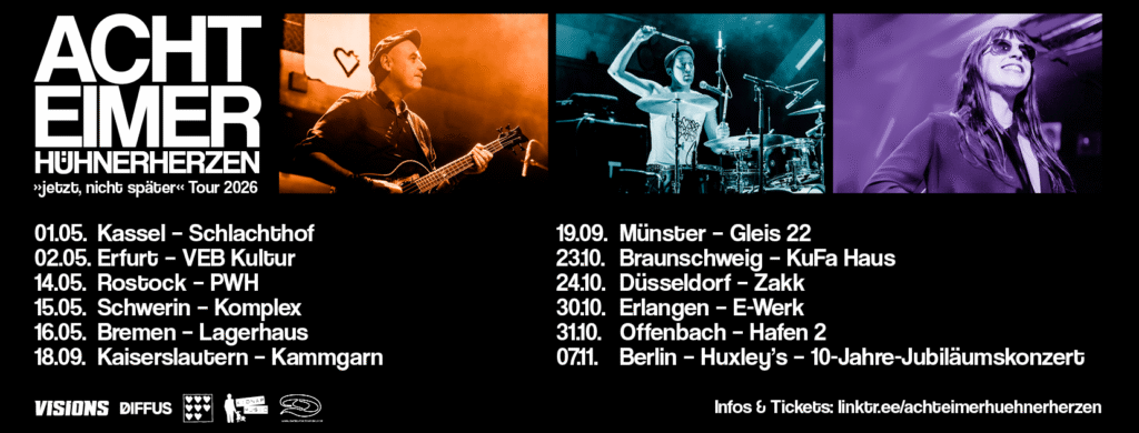 Infos & Tickets: https://achteimerhuehnerherzen.info/konzerte/