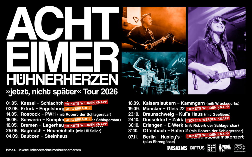 Infos & Tickets: https://achteimerhuehnerherzen.info/konzerte/